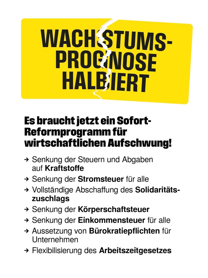 Wir wollen die Wirtschaft stärken, bestehende Arbeitsplätze sichern und neue Arbeits- und Ausbildungsplätze durch neue Gewerbeflächen, Unternehmensneuansiedlung und eine aktive Wirtschaftsförderung schaffen. Wir setzen dabei auf die Innovationskraft der sozialen Marktwirtschaft und eine Agenda für mehr Wachstum, Bürokratieabbau, Entlasten, Investieren. Jeder Unternehmer soll selber frei entscheiden können, wann er seinen Laden/Betrieb öffnet.