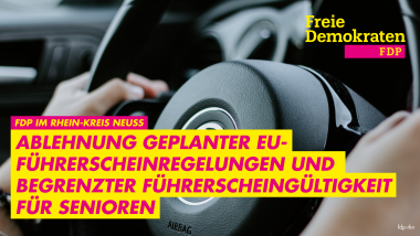 23.11.2023 FDP im Rhein-Kreis Neuss lehnt geplante neue EU-Führerscheinregelungen und begrenzte Führerscheingültigkeit für Senioren ab. Mehr dazu